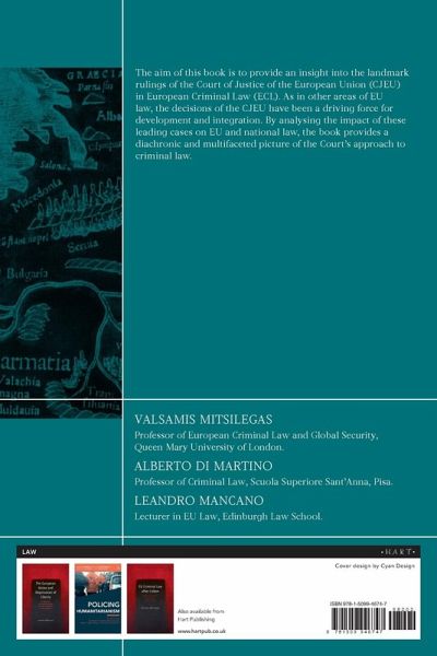 The aim of this book is to provide an insight into the landmark rulings of the Court of Justice of the European Union (CJEU) in European Criminal Law (ECL). As in other areas of EU law, the decisions of the CJEU have been a driving force for development and integration. By analysing the impact of these leading cases on EU and national law, the book provides a diachronic and multifaceted picture of the Court's approach to criminal law.