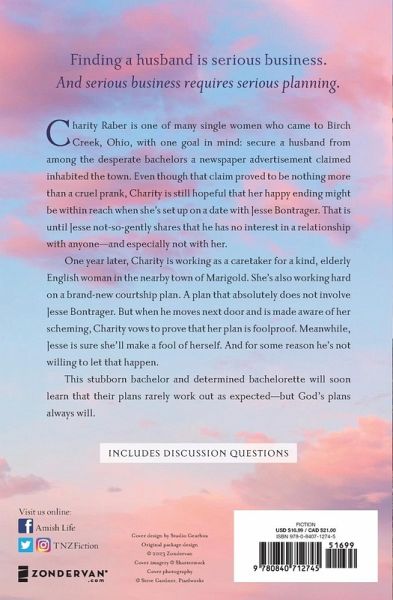 Finding a husband is serious business. And serious business requires serious planning. Charity Raber is one of many single women who came to Birch Creek, Ohio, with one goal in mind: secure a husband from among the desperate bachelors a newspaper advertisement claimed inhabited the town. Even though that claim proved to be nothing more than a cruel prank, Charity is still hopeful that her happy ending might be within reach when she's set up on a date with Jesse Bontrager. That is until Jesse not-so-gently shares that he has no interest in a relationship with anyone--and especially not with her. One year later, Charity is working as a caretaker for a kind, elderly English woman in the nearby town of Marigold. She's also working hard on a brand-new courtship plan. A plan that absolutely does not involve Jesse Bontrager. But when he moves next door and is made aware of her scheming, Charity vows to prove that her plan is foolproof. Meanwhile, Jesse is sure she'll make a fool of herself. And for some reason he's not willing to let that happen. This stubborn bachelor and determined bachelorette will soon learn that their plans rarely work out as expected--but God's plans always will. * Sweet Amish romance * The first book in the Amish of Marigold series * Book length: 87,000 words * Includes discussion questions for book clubs