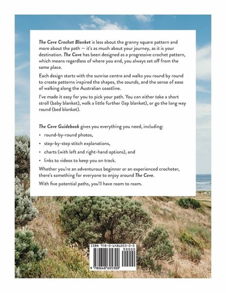 The Cove Crochet Blanket is less about the granny square pattern and more about the path - it's as much about your journey, as it is your destination. The Cove has been designed as a progressive crochet pattern, which means regardless of where you end, you always set off from the same place. Each design starts with the sunrise centre and walks you round by round to create patterns inspired the shapes, the sounds, and the sense of ease of walking along the Australian coastline. I've made it easy for you to pick your path. You can either take a short stroll (baby blanket), walk a little further (lap blanket), or go the long way round (bed blanket). The Cove Guidebook gives you everything you need, including:round-by-round photos, step-by-step stitch explanations, charts (with left and right-hand options), and links to videos to keep you on track. Whether you're an adventurous beginner or an experienced crocheter, there's something for everyone to enjoy around The Cove. With five potential paths, you'll have room to roam.