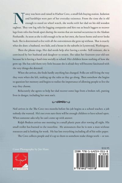 Nancy was born and raised in Harbor Cove, a small fish-buying station. Isolation and hardships were part of her everyday existence. From the time she is old enough to stand on wheel watch, she works with her dad on his old wooden tugboat. They tow log rafts for logging companies and hire out as beach loggers to recover logs from rafts that break apart during the storms that are normal occurrence in the Alaskan Panhandle. As soon as she is old enough to be on her own, she leaves home and never looks back. She is determined to live with all the conveniences she grew up without. That is exactly what she does: a husband, two kids, and a house in the suburbs in Lynnwood, Washington. Then the phone rings. Her dad needs help after having a stroke. Still resistant, she is convinced by her husband and daughter to return. She takes her fourteen-year-old son because he is having a hard time socially at school. Her children know nothing of how she grew up. She has told them very little because she is afraid they will become fascinated with the very things she detested. When she arrives, she finds hardly anything has changed. Folks are still living the way they were when she left, making up the rules as they go along. Then somehow she begins to question her memory and begins to realize the importance of allowing people to live the way they choose. Reluctantly she agrees to help her dad recover some logs from a broken raft, putting lives in danger, including her own son's. Neil arrives in the The Cove two months before his job begins as a school teacher, a job nobody else wanted. He's not even sure there will be enough children to have school open. When someone asks why he can't come up with answer. Ralph Bodeen arrives one morning in a small plastic punt after rowing all night. His small troller has burned to the waterline. He announces that he is now a man without resources and is looking for work. He has lost everything including all of his toilet paper. The Cove collects people and it's up to them to somehow make things work -- or not.