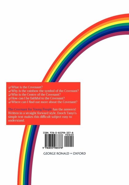 * Why is the rainbow the symbol of the Covenant? * What is the purpose of the Covenant? * How can we be faithful to the Covenant? The Covenant for Young People answers these questions - and many others - in a short, simple and direct way. To make it even easier to understand the Covenant, you will find that the book: * contains 19 short chapters, each looking at a different theme * explains difficult or unusual words when they first appear * is set in a large typeface for easy reading