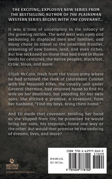 "The exciting, explosive new series from the bestselling author of The Plainsman western series begins with The Covenant... It was a time of uncertainty in the infancy of the growing nation. The wild west was open and beckoning to displaced men and families, and many chose to travel to the unsettled frontier, dreaming of new homes, land, and even riches. But few reckoned on those that had lived in those lands for centuries, the native peoples, Blackfoot, Crow, Sioux, and more. Elijah McCain, fresh from the Union army where he had attained the rank of Lieutenant Colonel with the Mounted Rifles, the cavalry unit under General Sherman, had returned home to find his wife on her deathbed, but pleading for her twin sons. She elicited a promise, a covenant, from her husband, "Find my boys, bring them home." And Eli made that covenant. Holding her hand as she slipped from life, he promised he would bring her sons, his stepsons, home one way or the other. But would that promise be the undoing of dreams, lives, and more? TAGLINE: Her final wish has become his life's mission..."--
