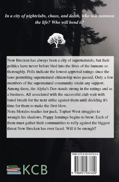 New Brecken has always been a city of supernaturals, but their politics have never before bled into the lives of the humans so thoroughly. Polls indicate the lowest approval ratings since the laws permitting supernatural citizenship were passed. Only a few members of the supernatural community retain any support. Among them, the Alpha's Den stands strong in the ratings and as a business. All associated with the successful club wait with bated breath for the next strike against them until deciding it's time for them to make the first blow. Nora Morales readies her pack. Topher West struggles to wrangle his shadows. Poppy Jennings begins to brew. Each of them must gather their communities to rally against the biggest threat New Brecken has ever faced. Will it be enough?