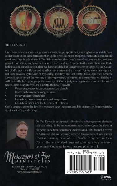 Wounds left untreated can only fester under a cover-up. The first step to healing and restoration is a responsible uncovering and exposure that brings light and remedy to festering wounds. Little wonder, Jeremiah 8:22 says, "Is there no balm in Gilead? Is there no physician there? Why then is there no recovery for the health of the daughter of my people?" (NKJV). From the under-shepherds to the sheep, from pulpits to the pews, several attempts have been made to conceal vile conspiracies, grievous errors, tragic apostasies, and explosive scandals. However, has there been any prosperity in unrighteousness? Can we continue to hide sin under the cloak and façade of religion? The Bible teaches that there's one God, one savior, and one gospel. But when people come to church, and they are denied access to the truth about sin, flesh, holiness, and sanctification, then we have a subtle but dangerous cover-up going on, for, without faith and holiness, no man can sustain intimacy with God. Unfortunately, children of God are held down in all kinds of bondage that they have been initially redeemed from. Cover-ups challenge the influence of light because every candle is meant for the mountain tops and not to be covered by bushels of hypocrisy, apostasy, and lust. I am about to unveil the mystery of sin, repentance, salvation, and sanctification. This book will basically help you grasp the severity of God's judgment against sin and all forms of ungodliness. In this book, the veil will be lifted and secrets uncovered. Sanctification is the path to enjoying the full benefits of salvation. Every sinpampering theology is counterfeit news and not good news. Part of the cover-up is the exaltation of feelings above faith, comfort above conviction, and freedom above accountability. Many hirelings have caused the Lord's sheep to stray from the fold. The Lord spoke through Prophet Ezekiel, "Son of man, prophesy against the shepherds of Israel... "woe to the shepherds of Israel who feed themselves! should not the shepherds feed the flock?" (Ezekiel 34:2 NKJV). What a powerful question?! ABOMINATIONS IN THE TEMPLE This book will deal basically with the judgment of God that comes against all ungodliness, starting from the pulpit to the pew. Ezekiel 8:1 "And it came to pass in the sixth year, in the sixth month, on the the fifth day of the month, as I sat in my house with the elders of Judah sitting before me, that the hand of the Lord God fell upon me there. Ezekiel 8:2 Then I looked, and there was a likeness, like the appearance of fire- from the appearance of His waist and downward, fire; and from His waist and upward, like the appearance of brightness, like the color of amber. Ezekiel 8:3 He stretched out the form of a hand, and took me by a lock of my hair; and the Spirit lifted me up between earth and heaven and brought me in visions of God to Jerusalem, to the door of the north gate of the inner court, where the seat of the image of jealousy was, which provokes to jealousy.