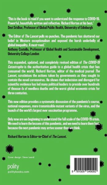 This expanded, updated, and completely revised edition of The COVID-19 Catastrophe is the authoritative guide to a global health crisis that has consumed the world. Richard Horton, editor of the medical journal The Lancet, scrutinises the actions taken by governments as they sought to contain the novel coronavirus. He shows that indecision and disregard for scientific evidence has led many political leaders to preside over hundreds of thousands of needless deaths and the worst global economic crisis for three centuries. This new edition provides a systematic discussion of the pandemic's course, national responses, more transmissible mutant variants of the virus, and the launch of the world's largest ever vaccination programme. Only now are we beginning to understand the full scale of the COVID-19 crisis. We need to learn the lessons of this pandemic, and we need to learn them fast, because the next pandemic may arrive sooner than we think.