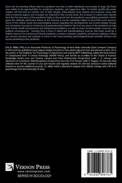 Given the far-reaching effects that the pandemic has had on both individuals and society at large, this book was written to be approachable for academics, students, and laypersons alike. To further amplify this point, readers will find that an eclectic mix of both (largely online-based) news articles and analyses, along with select academic papers and concepts are featured in this concise book; the inclusion of select news reports from the first two years of the pandemic helps to document how the pandemic was publicly presented-which, given the relatively ephemeral nature of the Internet, it can be especially helpful to document such sources. Some of the critical social and psychological issues regarding key developments and events (largely, though not exclusively, focused on America) and predominantly related to the first two years of the pandemic include both mental health and personal and interpersonal problems, as well as many social/societal, economic, and political consequences. Drawing from a host of varied and interdisciplinary sources, this book would be a helpful resource for (current and future) academics, scholars, clinicians, students, and anyone seeking a critical yet concise overview and analysis of some of the most pressing psychological/social scientific themes and issues pertaining to the pandemic.