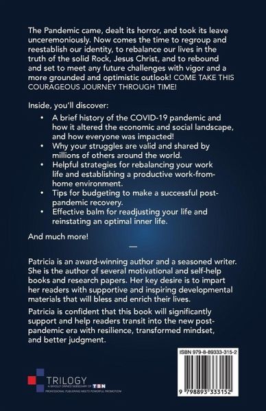 The Pandemic came, dealt its horror, and took its leave unceremoniously. Now comes the time to regroup and reestablish our identity, to rebalance our lives in the truth of the solid Rock, Jesus Christ, and to rebound and set to meet any future challenges with vigor and a more grounded and optimistic outlook! COME TAKE THIS COURAGEOUS JOURNEY THROUGH TIME! Inside, you'll discover: ¿ A brief history of the COVID-19 pandemic and how it altered the economic and social landscape, and how everyone was impacted! ¿ Why your struggles are valid and shared by millions of others around the world. ¿ Helpful strategies for rebalancing your work life and establishing a productive work-from- home environment. ¿ Tips for budgeting to make a successful post- pandemic recovery. ¿ Effective balm for readjusting your life and reinstating an optimal inner life. And much more!