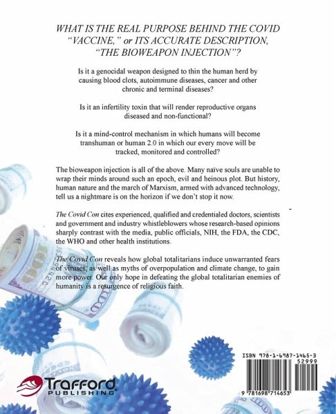 The Covid "vaccine," hyped ad nauseum as necessary, safe and effective, bears no semblance to the truth. This deceitful message about the mRNA, spike protein laden, genetically-modifying experiment has led masses of unsuspecting people like lambs to slaughter. After the roll out of the shot, an epidemic of sudden deaths began. OneAmerica insurance company has announced that individuals aged 18 to 64 died at a stunning 40 percent higher rate than usual. The Covid Con details a disturbing web of deceit, revealing the truth about the shot, the PCR tests, sicknesses and deaths from the injection and also the global totalitarian agenda that is driving this massive hoax. The Covid Con explains in chilling detail how Covid was a ruse of epic proportions used to hoodwink humanity and commit the greatest crime in human history. The Covid Con cites findings and opinions of experienced, qualified and credentialed doctors, scientists and government and industry whistleblowers who were all censored through big tech/big government collusion. The betrayal of the media, public officials, the NIH, the FDA, the CDC, the WHO and other trusted institutions tends to shift the ground beneath our feet. But we must stand strong in the truth or our freedoms will be lost forever.