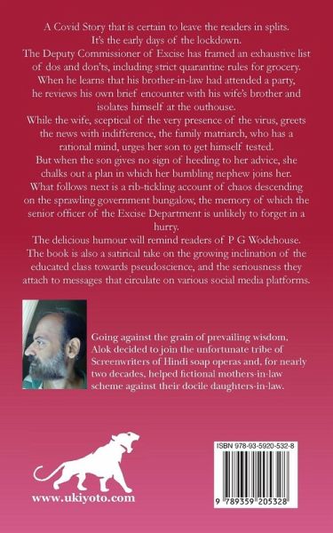 "A Covid Story that is certain to leave the readers in splits. It's the early days of the lockdown. The Deputy Commissioner of Excise has framed an exhaustive list of dos and don'ts, including strict quarantine rules for groceries. When he learns that his brother-in-law had attended a party, he reviews his own brief encounter with his wife's brother and isolates himself at the outhouse. While the wife, sceptical of the very presence of the virus, greets the news with indifference, the family matriarch, who has a rational mind, urges her son to get himself tested. But when the son gives no sign of heeding to her advice, she chalks out a plan in which her bumbling nephew joins her. What follows next is a rib-tickling account of chaos descending on the sprawling government bungalow, the memory of which the senior officer of the Excise Department is unlikely to forget in a hurry. The delicious humour will remind readers of P G Wodehouse. The book is also a satirical take on the growing inclination of the educated class towards pseudoscience, and the seriousness they attach to messages that circulate on various social media platforms."