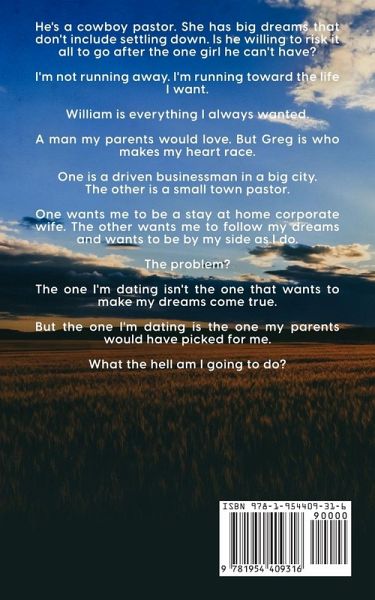 He's a cowboy pastor. She has big dreams that don't include settling down. Is he willing to risk it all to go after the one girl he can't have? I'm not running away. I'm running toward the life I want. William is everything I always wanted. A man my parents would love. But Greg is who makes my heart race. One is a driven businessman in a big city. The other is a small town pastor. One wants me to be a stay at home corporate wife. The other wants me to follow my dreams and wants to be by my side as I do. The problem? The one I'm dating isn't the one that wants to make my dreams come true. But the one I'm dating is the one my parents would have picked for me. What the hell am I going to do?
