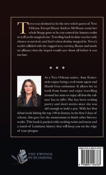 As a New Orleans native, Amy Exsterstein enjoys being a real estate agent and Mardi Gras enthusiast. It allows her to work from home and enjoy travelling around her state to enjoy all that the culture has to offer. She has been writing poetry and short stories since she was old enough to hold a pen. With her first debut book hitting the top 100 in fantasy in the first 2 days of release, this gave her the momentum to fi nish other literary works. This book is packed with exciting twists and turns and a touch of Louisiana history that will keep you on the edge history that will keep you on the edge of your pirogue.