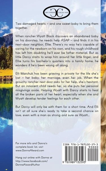 Two damaged hearts - and one sweet baby to bring them together. When rancher Wyatt Black discovers an abandoned baby on his doorstep, he needs help ASAP - and finds it in his next-door neighbor, Ellie. There's no way he's capable of caring for the newborn on his own, and his rough childhood has left him doubting he'll ever be father material. But as little Darcy starts to wrap him around her little finger, and Ellie turns his bachelor's quarters into a family home, he wonders if he's been wrong all along. Elli Marchuk has been grieving in private for the life she's lost - her baby, her marriage, even her job. When the grouchy rancher next door asks for her help, she's hesitant. But an innocent child needs her, so she puts her personal misgivings aside. Helping Wyatt with Darcy starts to heal all the broken parts of her heart, especially when she and Wyatt develop tender feelings for each other. But Darcy will only be with them for a short time. And Elli isn't at all sure she's ready to take a second chance on love, even with a man as strong and sure as Wyatt...