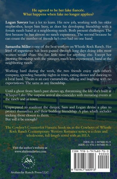 He agreed to be her fake fiancée. What happens when fake no longer applies? Logan Sawyer has a lot to learn. His new job, working with his older stepbrother, keeps him busy, as does his developing friendship with a female ranch hand at a neighboring ranch. Both present challenges. The first because he has almost no ranch experience. The second because he can count the number of friends he's ever had on one hand. Samantha Miller is one of the best workers on Whistle Rock Ranch. Her level of experience has been gained through long days doing jobs most women would shun. She has little time for anything else. Except her growing friendship with the younger, much less experienced, hand at the neighboring ranch. Working hard during the week, the two friends enjoy each other's company, spending Saturday nights in town, eating dinner, and dancing to a local band. Theirs is an easy camaraderie, talking and laughing with no expectations. The same as any friendship. Until a ghost from Sam's past shows up, threatening the life she's built at Whisper Rock. The surprise arrival also coincides with menacing events at the ranch and in town. Unprepared to confront the danger, Sam and Logan devise a plan to protect themselves and their budding friendship. A plan which includes tricking those closest to them. But will it be enough? The Cowboy's Counterfeit Fiancée, book six in the Cowboys of Whistle Rock Ranch Contemporary Western Romance series, is a clean and wholesome friends to lovers, full-length novel with an HEA.