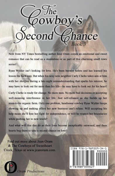New from NY Times bestselling author Jean Oram comes an emotional romance that can be read as a standalone or as part of this charming small town series! Ryan Wylder isn't looking for love. He's been burned before and has learned his lesson the hard way. But when his sexy new neighbor Carly Clarke takes aim at him with her shotgun during a late-night misunderstanding that sparks his interest, he may have to look out for more than his life-he may have to look out for his heart! Carly Clarke is ready for change. No more men. No more bad decisions or accepting well-meaning interference in her life. Just self-reliance as she builds up her soon-to-be organic farm. Only one problem, handsome cowboy Ryan Wylder keeps showing up and making offers her new business can't refuse. Will accepting his help mean she'll lose her fight for independence, or will he respect her boundaries while pushing her to new levels? And what will this duo do as their lives become inexplicably entwined, and their hearts beg them to take a second chance on love?