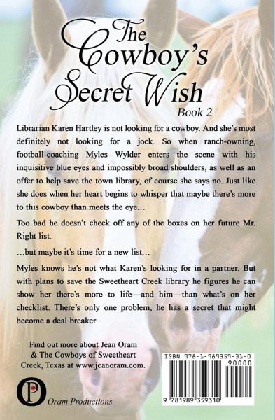 Librarian Karen Hartley is not looking for a cowboy. And she's most definitely not looking for a jock. So when ranch-owning, football-coaching Myles Wylder enters the scene with his inquisitive blue eyes and impossibly broad shoulders, as well as an offer to help save the town library, of course she says no. Just like she does when her heart begins to whisper that maybe there's more to this cowboy than meets the eye... Too bad he doesn't check off any of the boxes on her future Mr. Right list. ...but maybe it's time for a new list... Myles knows he's not what Karen's looking for in a partner. But with plans to save the Sweetheart Creek library he figures he can show her there's more to life-and him-than what's on her checklist. There's only one problem, he has a secret that might become a deal breaker. Will this cowboy find a way to win and keep the librarian? Or will his secret ruin everything as opposites attract in this small town sweet romance?