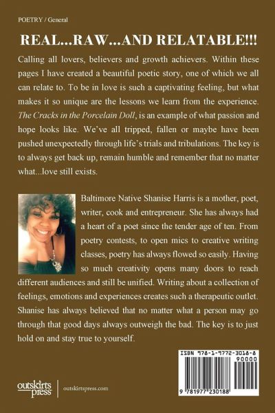 REAL...RAW...AND RELATABLE!!! Calling all lovers, believers and growth achievers. Within these pages I have created a beautiful poetic story, one of which we all can relate to. To be in love is such a captivating feeling, but what makes it so unique are the lessons we learn from the experience. The Cracks in the Porcelain Doll, is an example of what passion and hope looks like. We've all tripped, fallen or maybe have been pushed unexpectedly through life's trials and tribulations. The key is to always get back up, remain humble and remember that no matter what...love still exists.