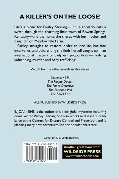 A KILLER'S ON THE LOOSE! Life's a picnic for Paisley Sterling-until a tornado cuts a swath through the charming little town of Rowan Springs, Kentucky-and the home she shares with her mother and daughter on Meadowdale Farm. Paisley struggles to restore order to her life, but fate intervenes, and before long she finds herself caught up in an international mystery of truly evil proportions-involving kidnapping, murder, and baby trafficking! Watch for the other novels in this series: Cemetery Silk The Plague Doctor The Paper Detective The Poisoned Pen The Sow's Ear ALL PUBLISHED BY WILDSIDE PRESS E. JOAN SIMS is the author of six delightful mysteries featuring crime writer Paisley Sterling. She also works in disease surveillance at the Centers for Disease Control and Prevention, and is planning many new adventures for her popular character.
