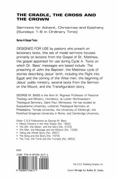 Designed for use by pastors who preach on lectionary texts, this set of model sermons focuses primarily on lections from the gospel of Matthew, the gospel appointed for use during Cycle A. Texts on which Dr. Bass' messages are based include: The preaching of John the Baptist; the Matthew cycle of stories describing Jesus' birth, including the flight into Egypt and the coming of the wise men; the beginning of Jesus' public ministry; several texts from the Sermon on the Mount; and the Transfiguration story. George M. Bass is the Alvin N. Rogness Professor of Pastoral Theology and Ministry, Homiletics, at Luther Northwestern Theological Seminary, Saint Paul, Minnesota. He has studied at Susquehanna University, Lutheran Theological Seminary at Philadelphia, Temple University, the University of Edinburgh, the Pontifical Gregorian University in Rome, and Cambridge University.