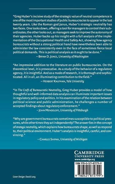 "Why are government bureaucrats sometimes susceptible to political pressures, while other times they act independently? The answer lies in the concept of strategic neutrality, which explains how bureaucrats shape, as well as respond to, their political environment. Huber's analysis is insightful, careful, and convincing." Charles Shipan, University of Michigan