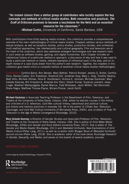 With contributions from 30 leading media scholars, this collection provides a comprehensive overview of the main methodologies of critical media studies. Together, the chapters in this collection give media critics a complete toolbox of essential critical media studies methodologies.
