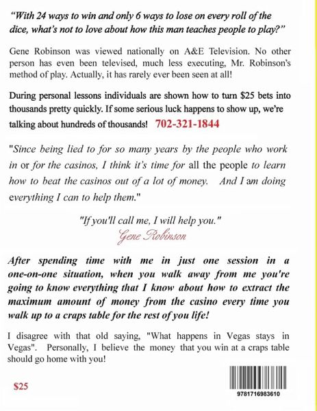 This book is dedicated to helping people learn the best possible way to play the game of craps. After you master the techniques in this book, you will then be able to have fun in the security of your knowledge that you are getting the absolute best value for your money while giving yourself an excellent chance to win a lot of money playing craps. Not only is there enjoyment in knowing you can no longer be manipulated by the dealers, but there's a great deal of fun in winning a large sum of money.