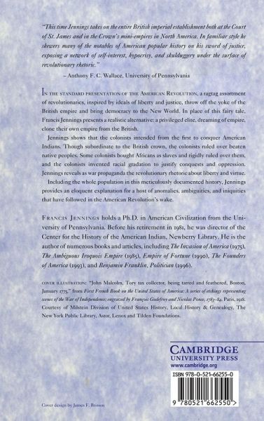 In the standard presentation of the American Revolution, a ragtag assortment of revolutionaries, inspired by ideals of liberty and justice, throw off the yoke of the British empire and bring democracy to the New World. In place of this fairy tale, Francis Jennings presents a realistic alternative: a privileged elite, dreaming of empire, clone their own empire from the British. This book, first published in 2000, shows that the colonists intended from the first to conquer American Indians. Though subordinate to the British crown, the colonists ruled over beaten native peoples. Some colonists bought Africans as slaves and rigidly ruled over them, and the colonists invented racial gradation to justify conquests and oppression. Jennings reveals as war propaganda the revolutionary rhetoric about liberty and virtue. Including the whole population in this meticulously documented history, Jennings provides an eloquent explanation for a host of anomalies, ambiguities, and iniquities that have followed in the American Revolution's wake.