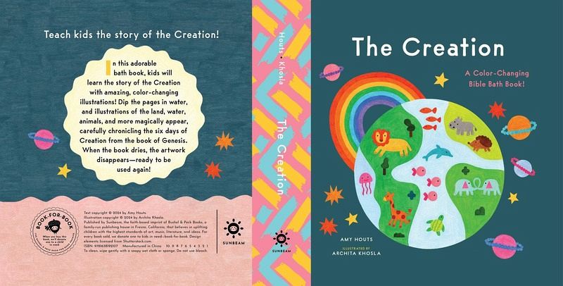 An interactive way to teach kids the story of the Creation! "Bath time becomes Bible learning with these hands-on books.Kids will love seeing ancient stories come to life right before their eyes!"-MandyArioto, President and Chief Executive Officer of The MomCo "These color-changing bath books are just what parents and grandparents are looking for in a kid-friendly Christian resource: faith-filled, engaging, and absolutely adorable! Something little ones will ask for again and again!" --Valerie Ellis, author of Share the Joy! A Christmas Lift-the-Flap Book (Paraclete) "Absolutely adorable! That's the only way to describe these two new books from author Amy Houts. Made for bathtime fun, each book has "missing" parts of the story that are revealed when dipped in water. Simple retellings and brightly colored illustrations make these books perfect for little ones!"-Tama Fortner, ECPA award-winning and bestselling author of more than sixty titles In this adorable bath book, kids will learn the story of the Creation with amazing, color-changing illustrations! Dip the pages in water, and illustrations of earth, water, animals, and more magically appear, carefully chronicling the six days of creation from the book of Genesis. When the book dries, the artwork disappears-ready to be used again! Even better, the squishy, vinyl bath book is waterproof and can be easily cleaned with a soapy cloth.