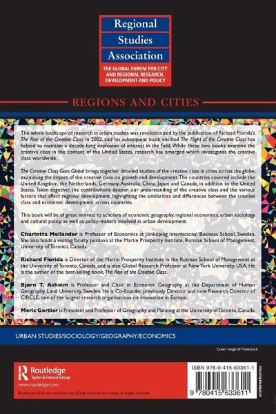 1. Introduction Charlotta Mellander and Richard Florida 2. Inside the Black Box of Regional Development: Human capital, the creative class and tolerance Richard Florida, Charlotta Mellander and Kevin Stolarick 3. Talent, Technology and Tolerance in Canadian Regional Development Richard Florida, Charlotta Mellander and Kevin Stolarick 4. Florida's Creative Class in a Swedish Context: The problem of measuring tolerance and amenity-driven growth Høgni Kalsø Hansen 5. Different Creative Cities: Exploring Danish data to adapt the creative class argument to small welfare economies Kristina Vaarst Andersen and Mark Lorenzen 6. One Size Fits All? Applying the creative class thesis onto a Nordic context Kristina Vaarst Andersen, Markus M. Bugge, Høgni Kalsø Hansen, Arne Isaksen and Mika Raunio 7. Tolerance, Aesthetics, Amenities or Jobs? Dutch city attraction to the creative class Gerard Marlet and Clemens van Woerkens 8. The Creative Class, Related Variety and Economic Growth in Dutch City Regions Irina van Aalst, Oedzge Atzema, Ron Boschma and Frank van Oort 9. Location, Quality of Place, and Outcomes: Applying the '3Ts' model to the UK Nick Clifton 10. The Geography of Creative People in Germany: Revisited Michael Fritsch and Michael Stuetzer 11. Location of the Creative Class in Seven European Countries Ron Boschma and Michael Fritsch 12. The Creative Class 'Down Under': Exploring the creative class theory in Australia Kevin M. Stolarick 13. Regional Development and the Creative Class in Japan Hans Westlund and Federica Calidoni 14. China's Development Disconnect Richard Florida, Charlotta Mellander and Haifeng Qian 15. The Creative Class around the World Charlotta Mellander and Richard Florida