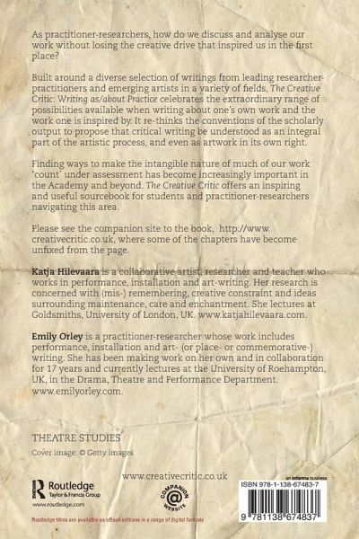 Built around a diverse selection of writings from leading researcher-practitioners and emerging artists in a variety of fields, The Creative Critic: Writing as/about Practice celebrates the extraordinary range of possibilities available when writing about one's own work and the work one is inspired by. It re-thinks the conventions of the scholarly output to propose that critical writing be understood as an integral part of the artistic process, and even as artwork in its own right.