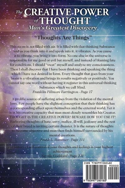 METAPHYSICIANS are frequently asked by students and patients, "What is thought?" This apparently simple question is now, as it has been through all the ages, the unanswered enigma. The ablest minds, the strongest individuals, the most religious men and women of the different stages of the world's civilization and unfoldment, have grappled with the problem of thought, and tried in some way, through reasoning, thinking, inspiration, deduction, induction, and the various methods employed by man in striving to comprehend a proposition, to reach a satisfactory solution of this greatest of all questions; to satisfy, or in some way appease the longing of the individual (even though the explanation were not sufficient for the world in general) for a partial answer, at least, of "What is thought?" From the earliest periods of human existence, successively down through the more and more enlightened stratas of human social and mental growth and formation, eddying through such brains as Aristotle, Plato, and the greatest philosophers of the Roman and Greek supremacy; swirling here and there in the current of human unfoldment and enlightenment; retarded for a time by the greatest minds of Germany and France, who tried to stem the tide of the ever-increasing momentum of that unanswered question which seemed to men, at all times and periods, to shield from the race the discovery of the Absolute, it has been transmitted to us. The adepts of ancient India have been struggling with this all-absorbing question for thousands of years, teaching their pupils that thought is the cause of all things. Over some of the temples of Egypt, now in ruins or buried by the sands of centuries, have been found the inscription, "Know thyself," which was considered the ultimate of all existence. Those fortunate enough to possess the means could, for an exorbitant sum, purchase a little book from the scribes, which merely contained the information that a knowledge of self, obtained through introspection, was all important for the future blessedness of the soul, and should be attained at any cost.