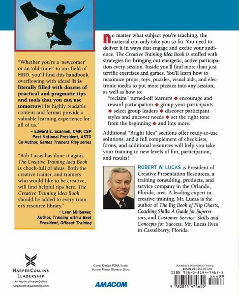 Trainers have to be creative if they want their participants to feel excited, challenged, and involved. The Creative Training Idea Book is packed with instructions for using activities, games, puzzles, toys, and props to increase energy and active participation in the classroom, and reveals how to think creatively about training in any situation. Based on the author's nearly three decades of training experience, this invaluable resource gives trainers the tools to adopt a fun, energetic approach that will make for a stimulating learning environment. Readers will learn new methods for: * setting the right tone * uncovering participant needs * grouping participants and selecting leaders * avoiding and reclaiming turned-off learners * encouraging and rewarding participation * and much more! Filled with checklists, forms, resources, and dozens of ""Bright Idea"" blurbs, The Creative Training Idea Book will help trainers and their learners achieve maximum learning results.