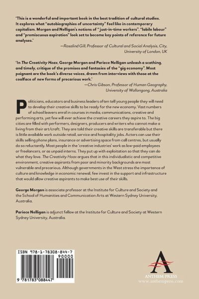 We often hear that creativity is the key to economic regeneration in the west, yet those who pursue creative skills/ambitions typically experience low incomes and poor career prospects. 'The Creativity Hoax' argues that the 'call to creativity' is designed to make workers more labile, agile and mobile, ready to shelve their ambitions and transfer their skills towards the opportunities the labour market produces.