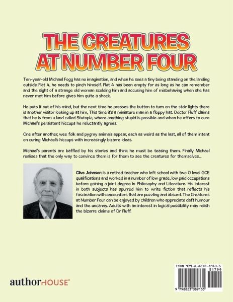 Ten-year-old Michael Fogg has no imagination, and when he sees a tiny being standing on the landing outside Flat 4, he needs to pinch himself. Flat 4 has been empty for as long as he can remember and the sight of a strange old woman scolding him and accusing him of misbehaving when she has never met him before gives him quite a shock. He puts it out of his mind, but the next time he presses the button to turn on the stair lights there is another visitor looking up at him, This time it's a miniature man in a floppy hat. Doctor Fluff claims that he is from a land called Stutopia, where anything stupid is possible and when he offers to cure Michael's persistent hiccups he reluctantly agrees. One after another, wee folk and pygmy animals appear, each as weird as the last, all of them intent on curing Michael's hiccups with increasingly bizarre ideas. Michael's parents are baffled by his stories and think he must be teasing them. Finally Michael realises that the only way to convince them is for them to see the creatures for themselves...