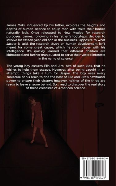 James Maki, influenced by his father, explores the heights and depths of human science to equip man with traits their bodies naturally lack. Once relocated to New Mexico for research purposes, James, following in his father's footsteps, decides to involve his fifteen-year-old son in the business. Opposite to what Jasper is told, the research study on human development isn't meant for some great cause, which he soon traces with his intelligence. It's quickly learned that different children are kidnapped and further manipulated to serve their vested interests in the name of science. The young boy assures Ella and Jiro, two of such kids, that he wishes to help them escape. However, after being caught in an attempt, things take a turn for Jasper. The boy uses every molecule of his brain to find the best of Ella and Jiro's newfound power to ensure their victory; however, neither of the three is ready to leave anyone behind. So... read to discover the real story of these creatures of American science.