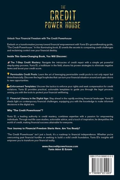 "The Credit Powerhouse" is not just a book; it's your passport to financial liberation. Let me share the irresistible WIFM (What's In It For Me) that makes this guide a game-changer. Unlock the secrets to credit success as "The Credit Powerhouse" takes you on a transformative journey. What sets it apart? The inclusion of enforcement templates, your legal arsenal in the battle for credit justice. We provide a step-by-step guide on how to initiate legal action against credit reporting agencies if they fail to comply with the law. It's not just information; it's empowerment, ensuring you have the tools to fight back if your rights are violated. Why should you grab this powerhouse of knowledge? WIFM is crystal clear: Navigate potential legal battles effortlessly with our enforcement templates. These templates, presented in a 5-step process, simplify the complexities of taking legal action. Bonus steps 6-7 guide you through the courtroom if needed. No need to hire an expensive attorney; our little powerhouse empowers you to stand up for your rights. But that's not all! "The Credit Powerhouse" unveils cutting-edge secrets to building tradelines that catalyze significant score growth. It's not just about dispute letters; it's a comprehensive guide to reshape your credit landscape. What's the punch? This compact yet potent guide is your go-to resource for credit mastery. Access the enforcement templates without the headache of figuring it out - just follow the straightforward process outlined in this small book with a big impact. It's not just a read; it's your actionable roadmap to a stronger credit profile. Don't miss out! Grab "The Credit Powerhouse" now for a powerhouse of insights, actionable templates, and the keys to unlock your path to financial freedom. It's not just a book; it's your tool for credit empowerment with a knockout punch.