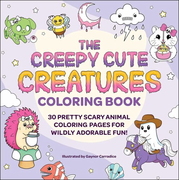 Unleash your creativity with these adorably dark animal coloring pages! Creepy Cute Creatures takes a walk on the wild side with these disturbingly delightful depictions of killer kittens, extra-hooved horses, blood-thirsty bunnies, and more!