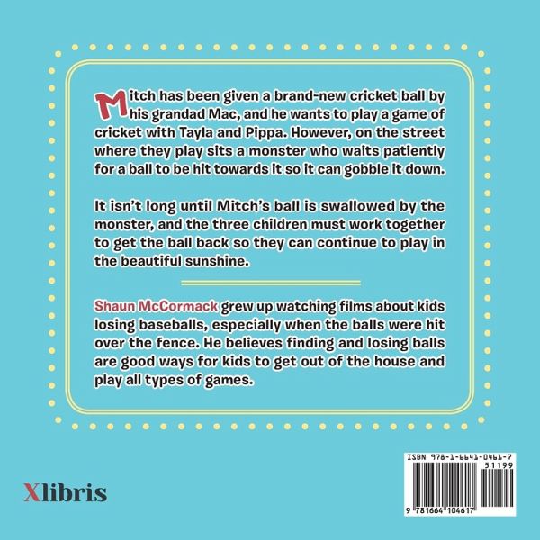 Mitch has been given a brand-new cricket ball by his grandad Mac, and he wants to play a game of cricket with Tayla and Pippa. However, on the street where they play sits a monster who waits patiently for a ball to be hit towards it so it can gobble it down. It isn't long until Mitch's ball is swallowed by the monster, and the three children must work together to get the ball back so they can continue to play in the beautiful sunshine.