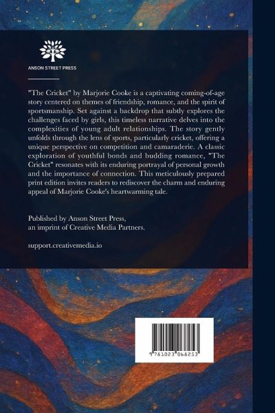 "The Cricket" by Marjorie Cooke is a captivating coming-of-age story centered on themes of friendship, romance, and the spirit of sportsmanship. Set against a backdrop that subtly explores the challenges faced by girls, this timeless narrative delves into the complexities of young adult relationships. The story gently unfolds through the lens of sports, particularly cricket, offering a unique perspective on competition and camaraderie. A classic exploration of youthful bonds and budding romance, "The Cricket" resonates with its enduring portrayal of personal growth and the importance of connection. This meticulously prepared print edition invites readers to rediscover the charm and enduring appeal of Marjorie Cooke's heartwarming tale. This work has been selected by scholars as being culturally important, and is part of the knowledge base of civilization as we know it. This work is in the public domain in the United States of America, and possibly other nations. Within the United States, you may freely copy and distribute this work, as no entity (individual or corporate) has a copyright on the body of the work. Scholars believe, and we concur, that this work is important enough to be preserved, reproduced, and made generally available to the public. We appreciate your support of the preservation process, and thank you for being an important part of keeping this knowledge alive and relevant.