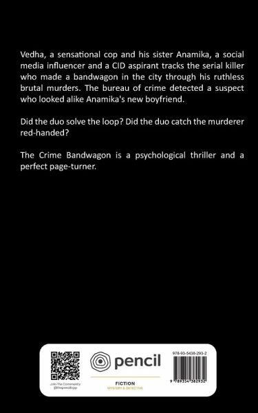 Vedha, a sensational cop and his sister Anamika, a social media influencer and a CID aspirant tracks the serial killer who made a bandwagon in the city through his ruthless brutal murders. The bureau of crime detected a suspect who looked alike Anamika's new boyfriend. Did the duo solve the loop? Did the duo catch the murderer red-handed? The Crime Bandwagon is a psychological thriller and a perfect page-turner.
