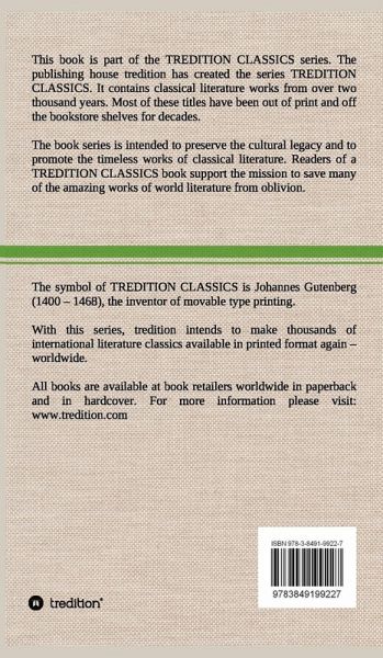 This book (hardcover) is part of the TREDITION CLASSICS. It contains classical literature works from over two thousand years. Most of these titles have been out of print and off the bookstore shelves for decades. The book series is intended to preserve the cultural legacy and to promote the timeless works of classical literature. Readers of a TREDITION CLASSICS book support the mission to save many of the amazing works of world literature from oblivion. With this series, tredition intends to make thousands of international literature classics available in printed format again worldwide.