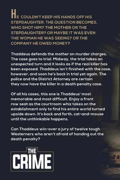 Thaddeus Murfee is back in this twisted tale of two trials, mother and daughter, each claiming to have shot father... He couldn't keep his hands off his stepdaughter. The question becomes, who shot him? The mother or the stepdaughter? Or maybe it was even the woman he was seeing? Or the husband of the woman he seduced? Thaddeus defends the mother on murder charges. The case goes to trial. Midway, the trial takes an unexpected turn and it looks as if the real killer has been exposed. Thaddeus isn't finished with the case, however, and soon he's back in trial yet again. The police and the District Attorney are certain they now have the killer in a death penalty case. Of all his cases, this one is Thaddeus' most memorable and most difficult. Enjoy a front-row seat as the courtroom whiz takes on the establishment only to find his entire world turned upside down. It's back and forth, cat-and-mouse until the unthinkable happens. Can Thaddeus win-over a jury of twelve tough Westerners who aren't afraid of handing out the death penalty?