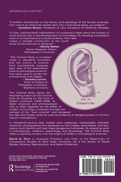 This fascinating book traces the evolution of the "criminal body" by focusing on the work of Cesare Lombroso, an Italian physician and anthropologist, who is widely held to be the father of modern criminology. Building on Lombroso's concept of the "born criminal" and the idea that bodies could be used as evidence in criminal investigations, The Criminal Body offers an intriguing window into the origins of today's criminological science.