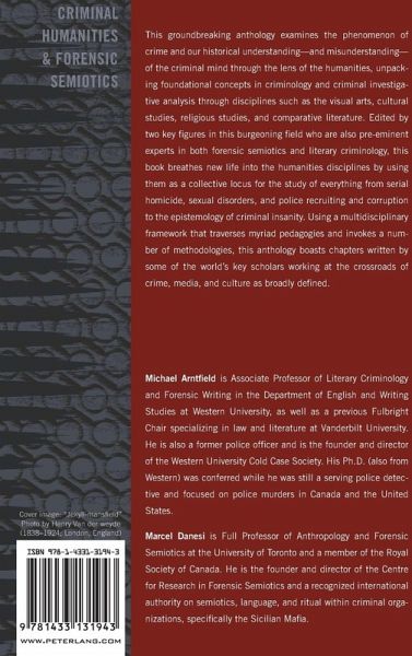 Contents: Michael Arntfield/Marcel Danesi: Introduction: Rise of the Criminal Humanist - James Johnston: A "notable newe Italionisme": Providence, Plague, and the Final Words of the Criminally Condemned in The Unfortunate Traveller - Lee Mellor: Original Gangsta: Self-Conceptualization and Criminogenic Authenticity in Hip Hop Music - Yair Neuman/Yochai Cohen/James Knoll: Metonymy and Mass Murder: Diagnosing "Splitting" Through Automatic Text Analysis - Joan Swart: Psychopaths in Film: Are Portrayals Realistic and Does It Matter? - Trevor Grant: The Hammer and the Hummingbird: Spectating Crime Inside the Documentary Film - DJ Williams/John Edgar Browning: Looking Inside the Coffin: An Overview of Contemporary Human Vampirism and Its Relevance for Forensics Professionals - Sonia Halpern: A Yiddishe Cop: Jewish Identity, Police, and Prisoners in Contemporary Law Enforcement - Lee Mellor/Vivek Venkatesh/Jason Wallin/Tieja Thomas: Killing for Slender Man: The Emergence of an Electronic Gospel - Victoria Bigliardi: Crime as Curation: Understanding Crime Through the Lens of the Museum - Bethany K. Walters/Eric W. Hickey: Crime and the Canvas: Depicting Criminals and Their Punishments in the Visual Arts, from Antiquity to Present.