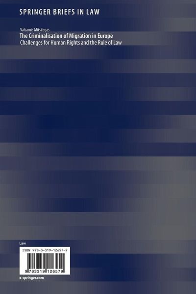 This is the first monograph providing a comprehensive legal analysis of the criminalisation of migration in Europe. The book puts forward a definition of the criminalisation of migration as the three-fold process whereby migration management takes place via the adoption of substantive criminal law, via recourse to traditional criminal law enforcement mechanisms including surveillance and detention, and via the development of mechanisms of prevention and pre-emption. The book provides a typology of criminalisation of migration, structured on the basis of the three stages of the migrant experience: criminalisation before entry (examining criminalisation in the context of extraterritorial immigration control, delegation and privatisation in immigration control and the securitisation of migration); criminalisation during stay (examining how substantive criminal law is used to regulate migration in the territory); and criminalisation after entry and towards removal (examining efforts to exclude and remove migrants from the territory and jurisdiction of EU Member States and criminalisation through detention). The analysis focuses on the impact of the criminalisation of migration on human rights and the rule of law, and it highlights how European Union law (through the application of both the EU Charter of Fundamental Rights and general principles of EU law) and ECHR law may contribute towards achieving decriminalisation of migration in Europe.
