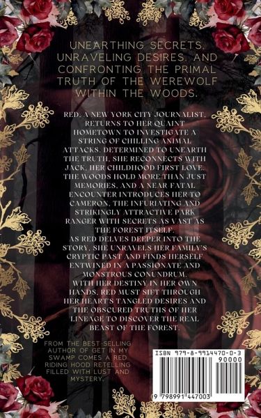 Unearthing secrets, unraveling desires, and confronting the primal truth of the werewolf within the woods. Red, a New York City journalist, returns to her quaint hometown to investigate a string of chilling animal attacks. Determined to unearth the truth, she reconnects with Jack, her childhood first love. The woods hold more than just memories, and a near-fatal encounter introduces her to Cameron, the infuriating and strikingly attractive park ranger with secrets as vast as the forest itself. As Red delves deeper into the story, she unravels her family's cryptic past and finds herself entwined in a passionate and monstrous conundrum. With her destiny in her own hands, Red must sift through her heart's tangled desires and the obscured truths of her lineage to discover the real beast of the forest. From the best-selling author of Get In My Swamp comes a Red Riding Hood retelling filled with lust and mystery.