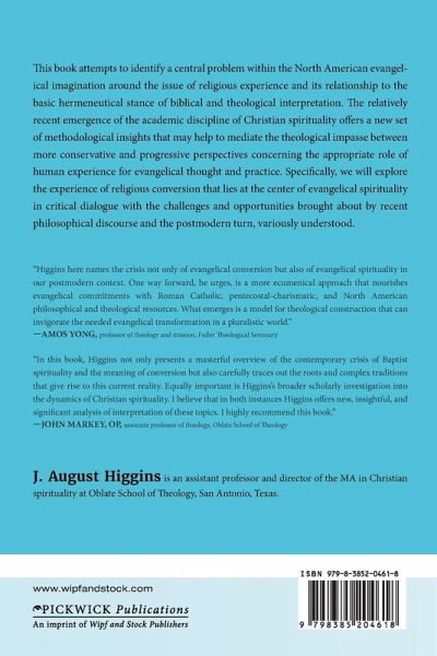 This book attempts to identify a central problem within the North American evangelical imagination around the issue of religious experience and its relationship to the basic hermeneutical stance of biblical and theological interpretation. The relatively recent emergence of the academic discipline of Christian spirituality offers a new set of methodological insights that may help to mediate the theological impasse between more conservative and progressive perspectives concerning the appropriate role of human experience for evangelical thought and practice. Specifically, we will explore the experience of religious conversion that lies at the center of evangelical spirituality in critical dialogue with the challenges and opportunities brought about by recent philosophical discourse and the postmodern turn, variously understood.