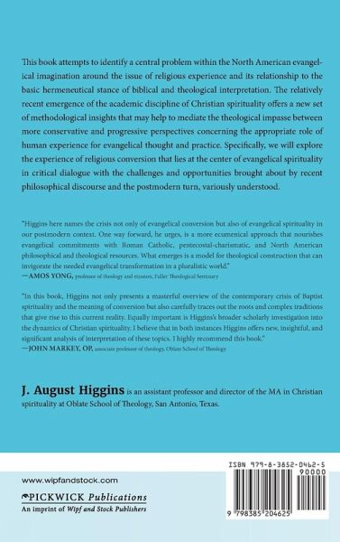 This book attempts to identify a central problem within the North American evangelical imagination around the issue of religious experience and its relationship to the basic hermeneutical stance of biblical and theological interpretation. The relatively recent emergence of the academic discipline of Christian spirituality offers a new set of methodological insights that may help to mediate the theological impasse between more conservative and progressive perspectives concerning the appropriate role of human experience for evangelical thought and practice. Specifically, we will explore the experience of religious conversion that lies at the center of evangelical spirituality in critical dialogue with the challenges and opportunities brought about by recent philosophical discourse and the postmodern turn, variously understood.