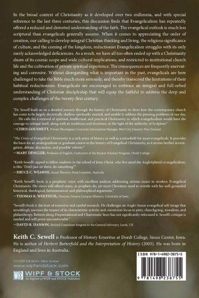In the broad context of Christianity as it developed over two millennia, and with special reference to the last three centuries, this discussion finds that Evangelicalism has repeatedly offered a reduced and distorted understanding of the faith. The evangelical outlook is much less scriptural than evangelicals generally assume. When it comes to appreciating the order of creation, our calling to develop integral Christian thinking and living, the religious significance of culture, and the coming of the kingdom, reductionist Evangelicalism struggles with its only rarely acknowledged deficiencies. As a result, we have all too often ended up with a Christianity shorn of its cosmic scope and wide cultural implications, and restricted to institutional church life and the cultivation of private spiritual experience. The consequences are frequently enervating and corrosive. Without disregarding what is important in the past, evangelicals are here challenged to take the Bible much more seriously, and thereby transcend the limitations of their habitual reductionism. Evangelicals are encouraged to embrace an integral and full-orbed understanding of Christian discipleship that will equip the faithful to address the deep and complex challenges of the twenty-first century.