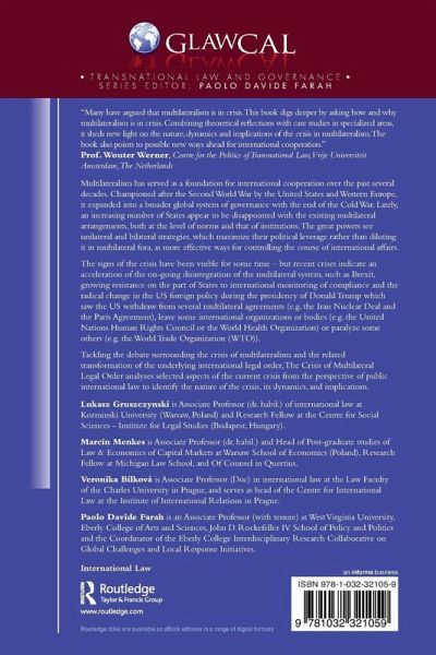 Introduction: Mapping the crisis of multilateralism Chapter 2: Oleksandr Vodiannikov, The crisis of trust in contemporary multilateralism: International order in times of perplexity Chapter 3: Sean Butler, Believing is seeing: Normative consensus and the crisis of institutional multilateralism Chapter 4: Maria Varaki, Revisiting the 'crisis' of international law Chapter 5: Mary E. Footer, The multilateral international order - Reports of its death are greatly exaggerated Chapter 6: Christopher Lentz, State withdrawals of jurisdiction from an international adjudicative body Chapter 7: Malgosia Fitzmaurice, Multilateralism, community of interests and environmental law Chapter 8: Vassilis Pergantis, The advent and fall of trust as a cornerstone of judicial cooperation in multilateral regimes in Europe: A cautionary tale Chapter 9: Agnieszka Nimark, The nuclear non-proliferation regime at 50: Midlife crisis and its consequences Chapter 10: Patrycja Grzebyk, Karolina Wierczy