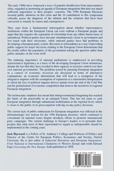 The 1994 European Elections focused public attention on the perception that representatives put integration above public interest. The contributors here critically assess the diagnosis of the ailment and the solutions that have been canvassed to remedy its causes and consequences.